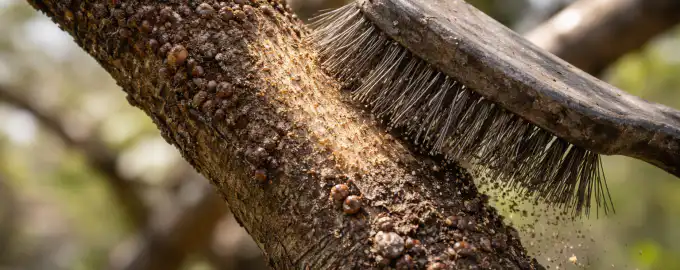 Jos löydät omena- tai luumupuun kuoresta tiheitä ”suomuja”, joita ei voi yksinkertaisesti ravistaa pois kädelläsi, puutarhasi on hyökännyt suomuhyönteisen kimppuun.